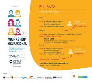 C. Taller pràctic sobre competències en la incorporació de talent jove a les empreses que s’adreça tant a empreses com a demandants d’ocupació. Estarà dinamitzat per Iván Lara de Zoom Comunitario, expert en comunicació i inserció laboral.