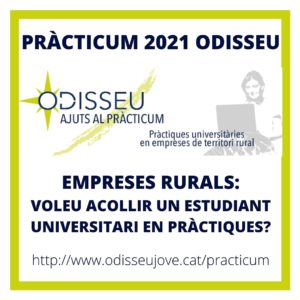 S’ha obert la nova convocatòria d’ajuts al Pràcticum Odisseu. Un cop més, la iniciativa vol incentivar l’estada de joves universitaris en pràctiques remunerades a empreses situades en municipis rurals amb l’objectiu de promoure la competitivitat empresarial i el retorn i l’establiment d’aquests joves a les zones rurals.